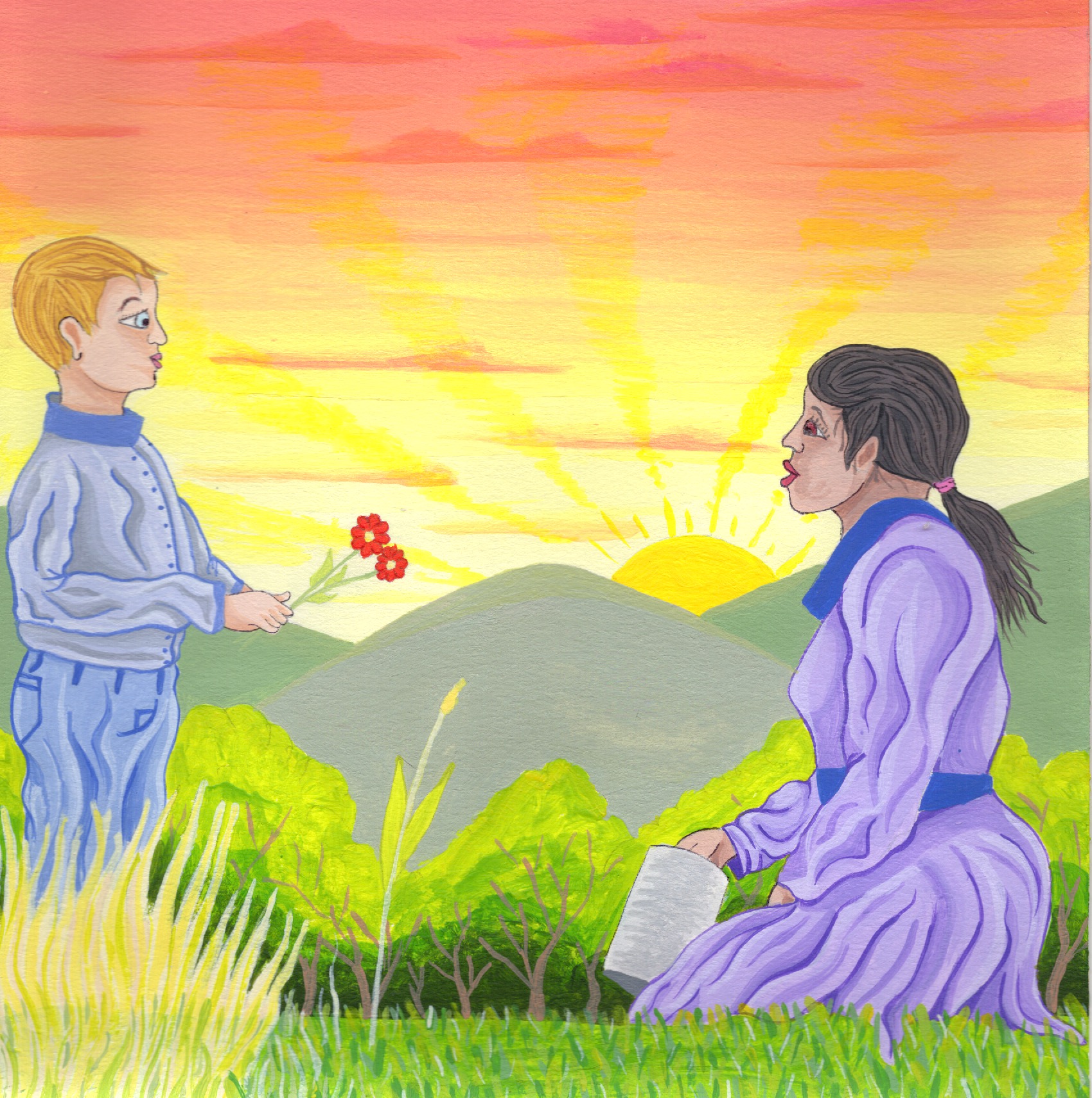 boy giving flower to woman Published February 25, 2025 at 1700 × 1710 in Don’t Judge A Book By It’s Cover